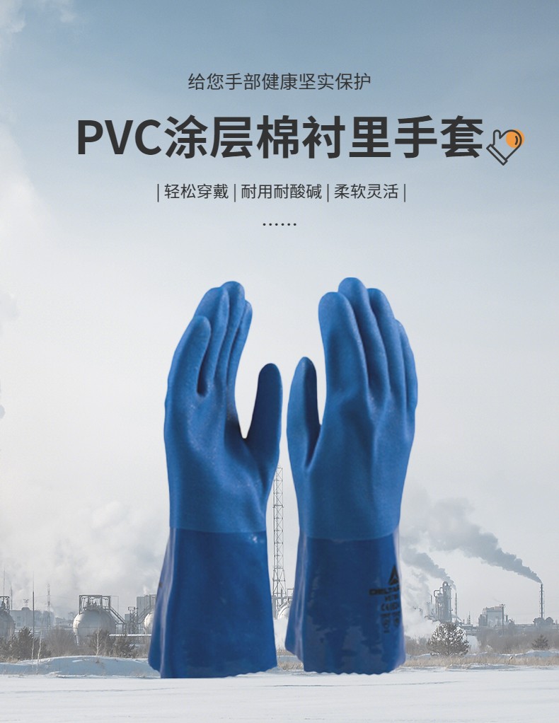 代尔塔 201735劳保手套 防化手套 耐酸碱防护手套 工作手套 PVC硫化手套