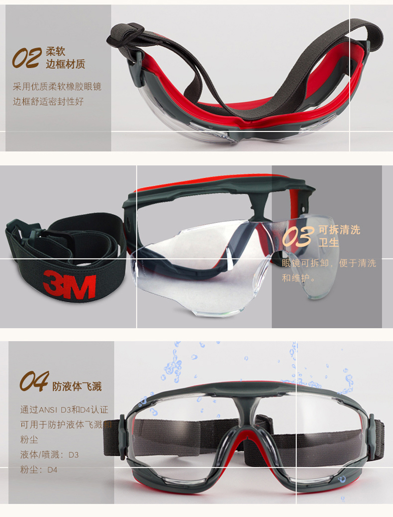 3M GA501护目镜 防雾涂层防刮擦防飞溅防冲击防化学