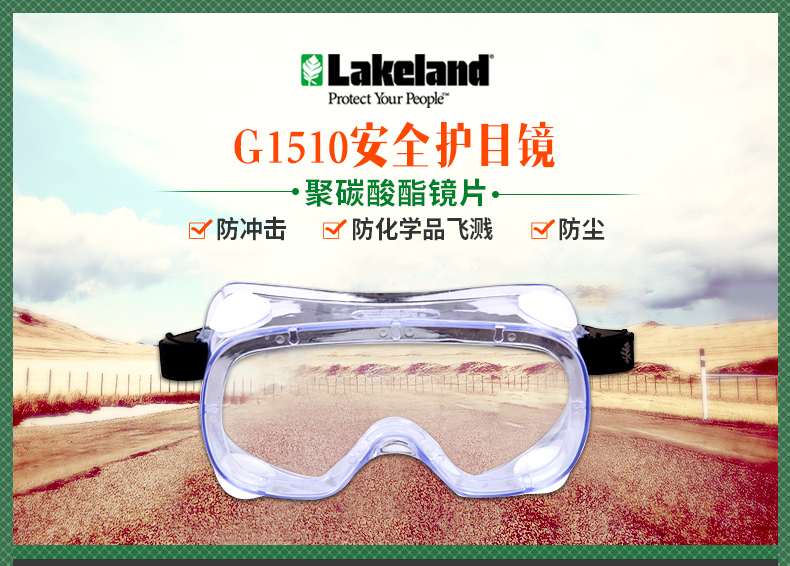 Lakeland安全护目镜户外防雾防冲击喷溅防风G1510AF