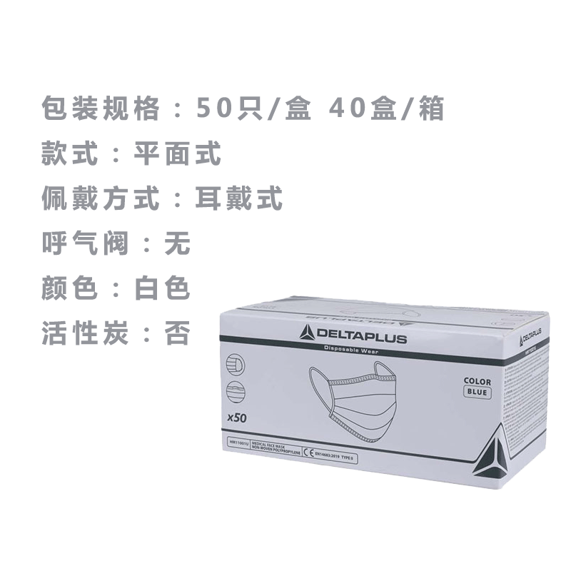 代尔塔 104029 一次性使用口罩防飞沫粉尘男女通用蓝色口罩