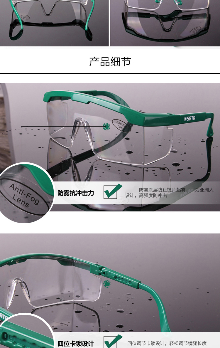 世达(sata)YF0101不防雾/0102防雾护目镜防尘防冲击防飞溅骑行亚洲款防风沙