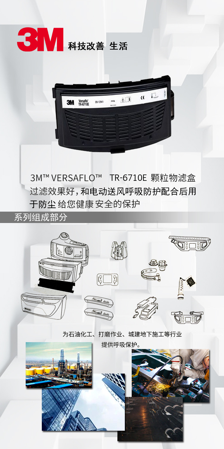 3M TR-6710E 颗粒物滤盒 搭配正压式电动送风主机使用