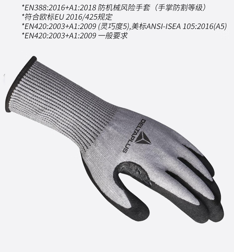 代尔塔 202022指尖和掌面PU涂层防割手套手掌贴皮玻璃加工手套耐磨