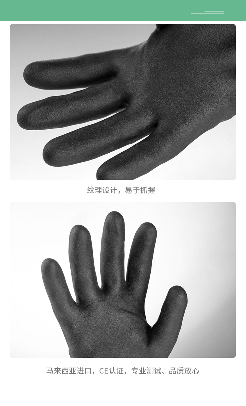 雷克兰 EN15丁腈橡胶防化手套抗撕裂刺破摩擦凸起菱形细纹表面无衬0.38mm厚33cm长