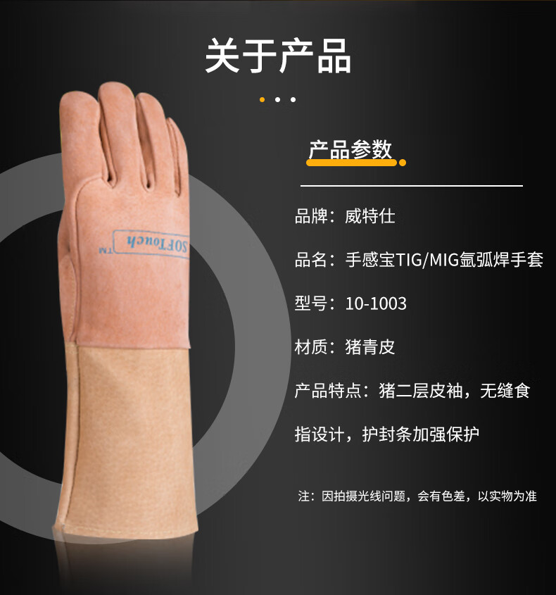 威特仕 10-1003 绒面猪青皮长袖款手感宝氩弧焊TIG手套