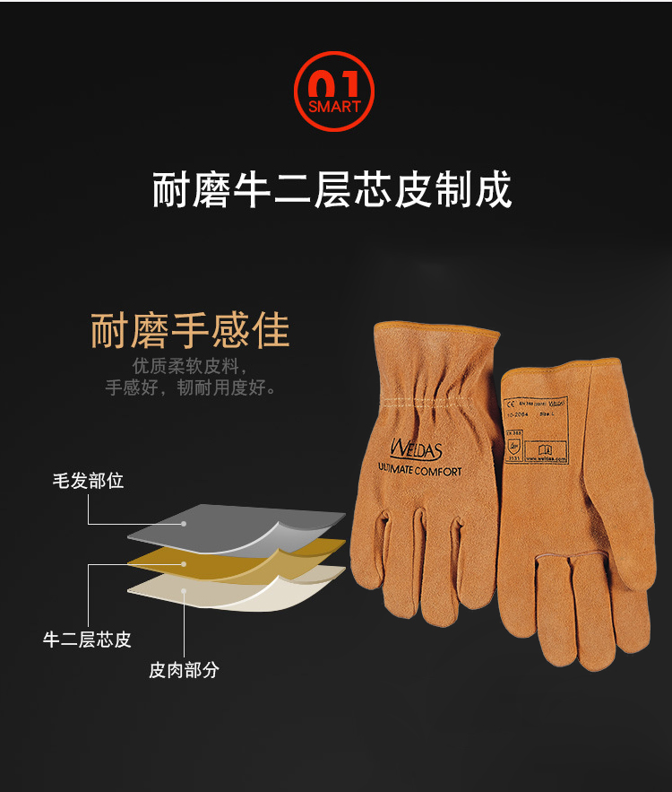 威特仕 10-2064耐磨牛二层芯皮款短款电焊手套