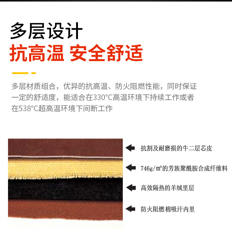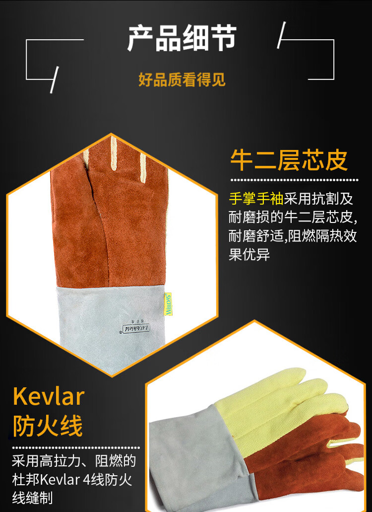威特仕 10-4900 耐磨防切割皮层织物五指款耐极高温手套防切割电焊手套
