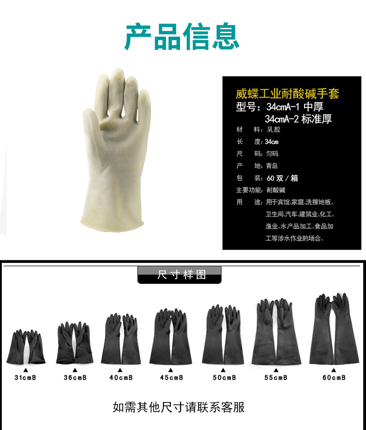 威蝶 34cmA-2白色劳保手套乳胶防水防污耐磨耐酸碱化工防护34厘米A-2 标准厚