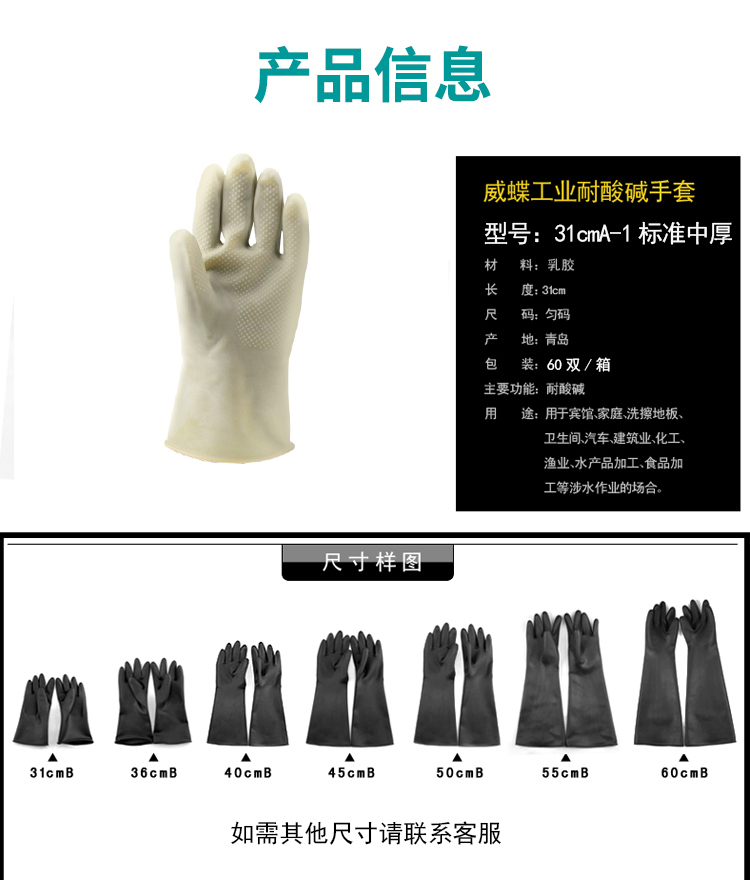 威蝶 31cmA-1白色中厚劳保手套乳胶耐磨耐酸碱化工手套 31厘米中厚(耐酸碱)