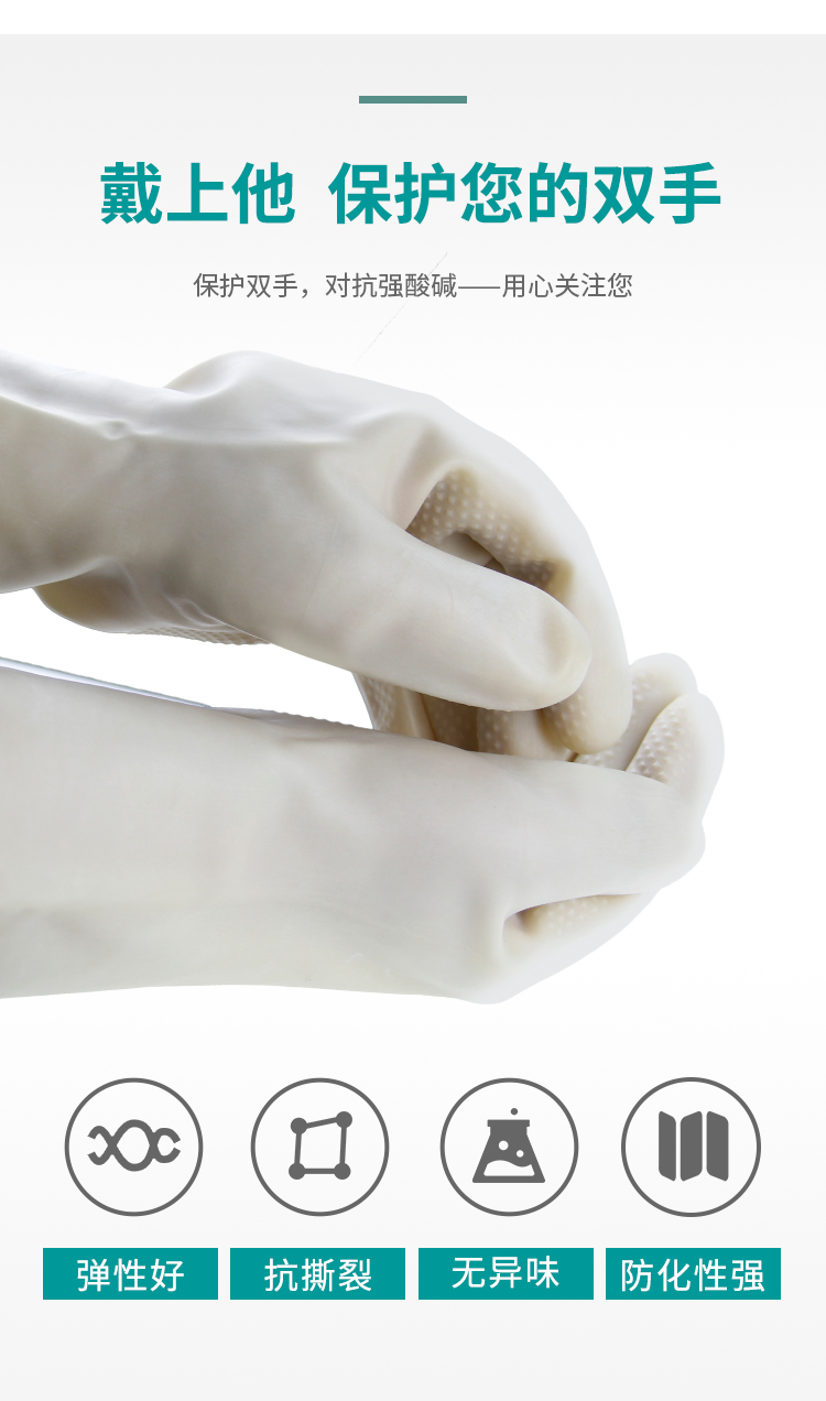 威蝶 31cmA-1白色中厚劳保手套乳胶耐磨耐酸碱化工手套 31厘米中厚(耐酸碱)