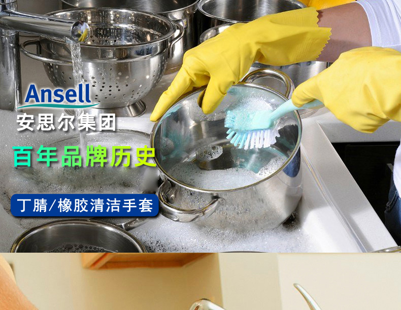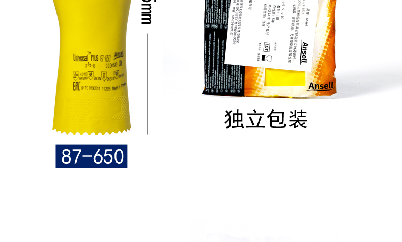 安思尔 87-650橡胶防化劳保手套 耐酸碱防实验室腐蚀手套