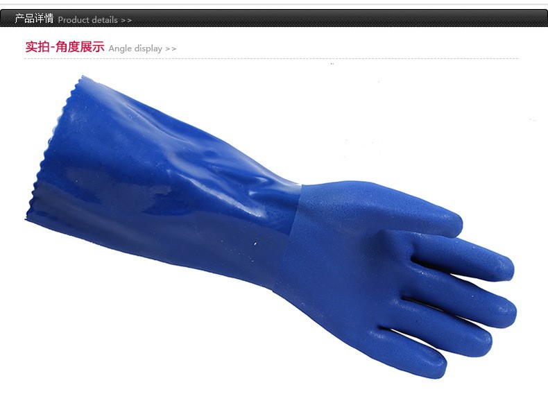 安思尔 14-663防化手套蓝色PVC防滑耐酸碱手套直筒劳保防护手套
