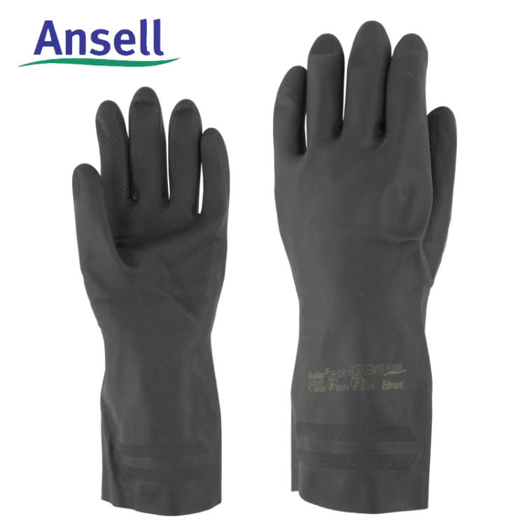 安思尔 29-500 氯丁橡胶劳保防化手套耐酸碱抗溶剂家务清洗清洁石油化工业