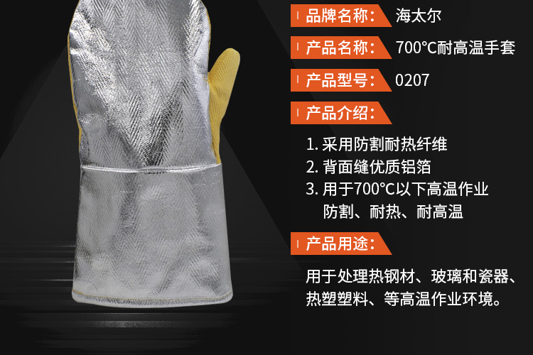 海太尔 0207 耐高温手套 防切割 耐磨 耐700℃高温 热1000℃ 长36 劳保手套 耐150高温