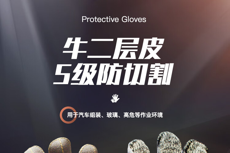 海太尔 0082 混合钢丝防割手套 牛皮涂层 5级防切割防穿刺抗撕裂劳保手套