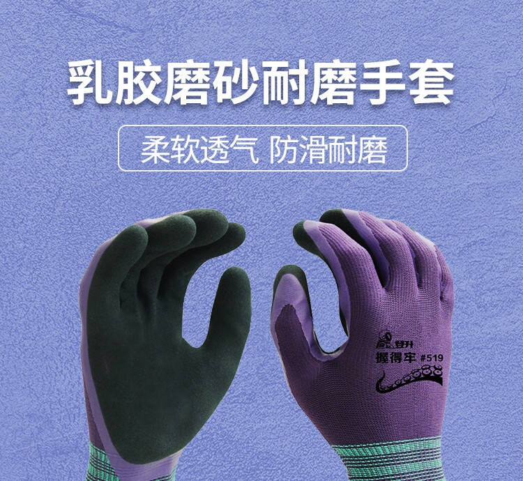 登升 519发泡磨砂乳胶手套 浸胶涂层防滑抗撕裂柔软透气劳保手套