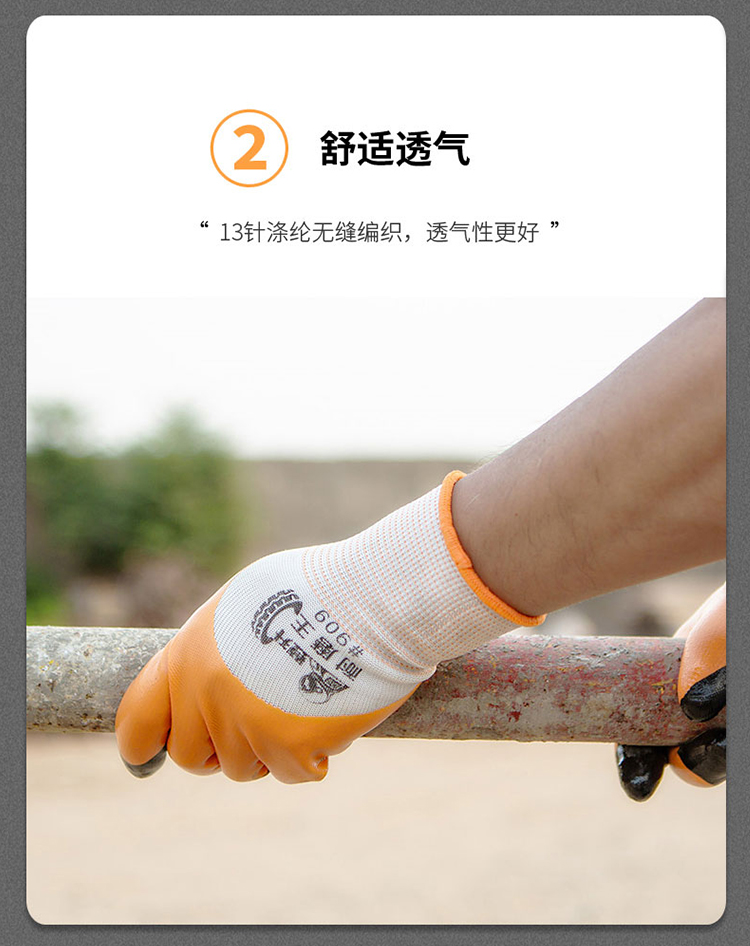 登升 #909桔色 耐磨王劳保手套 丁腈浸胶涂胶乳胶手套 防滑耐磨透气耐油耐酸碱工地工作防护手套