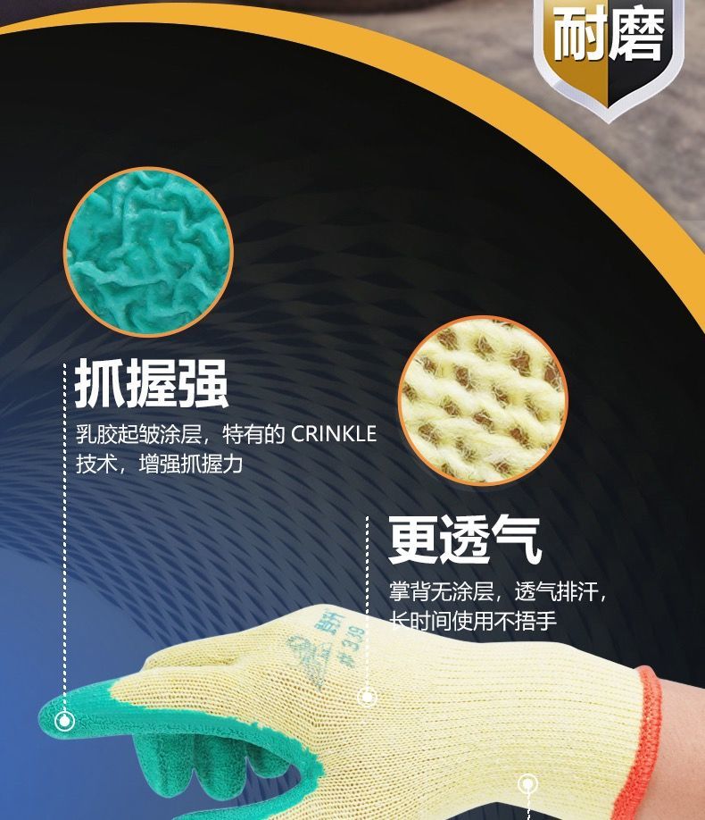 登升 #389 尼龙皱纹劳保手套 涤纶乳胶涂层耐磨防滑建筑搬运加厚手套
