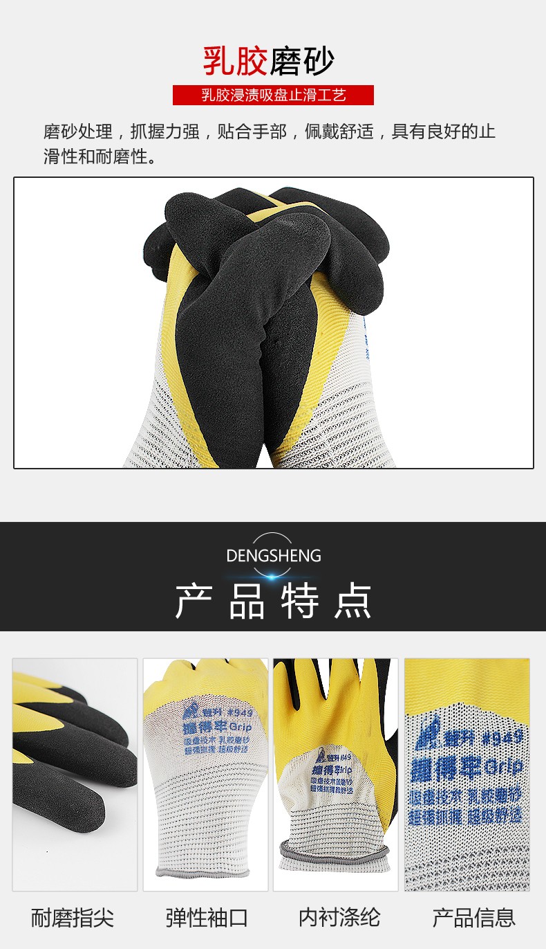 登升 #949握得牢劳保手套 磨砂耐磨防滑透气浸挂乳胶发泡手套