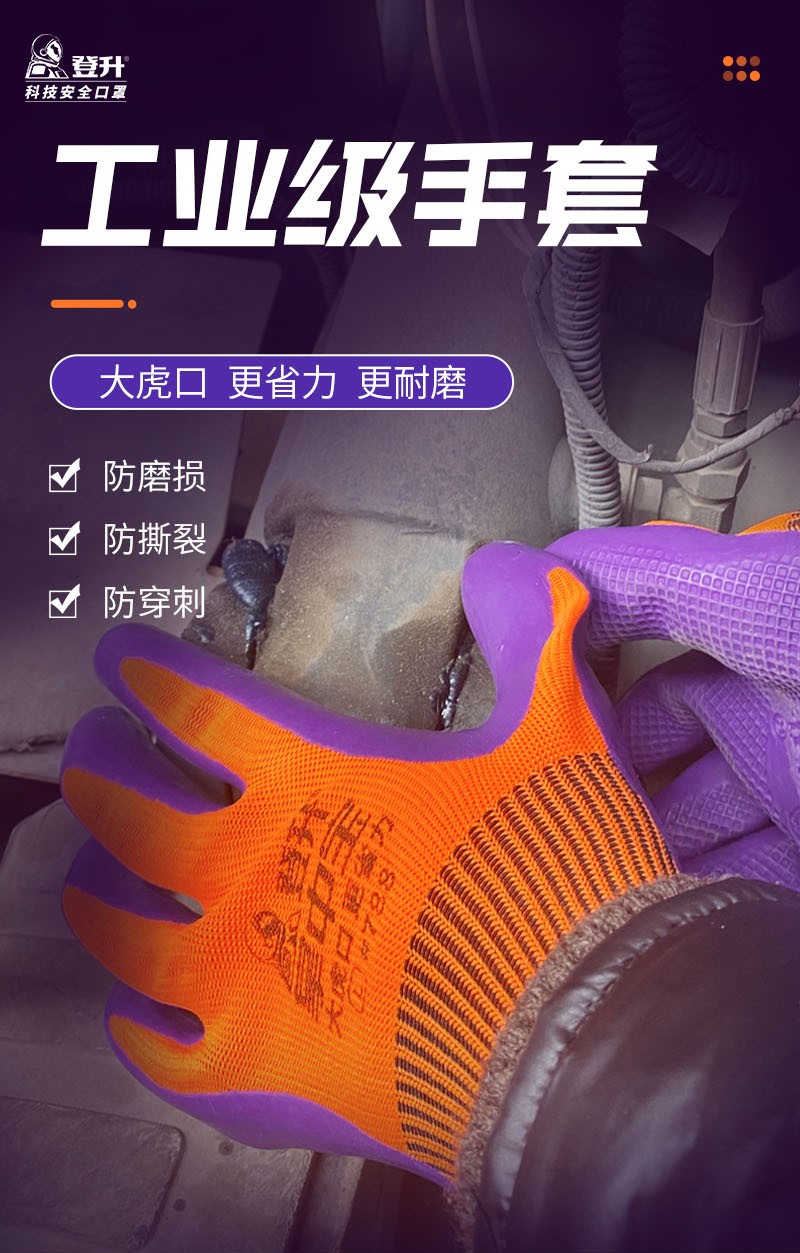 登升掌中宝#788 透气耐磨防滑钢筋建筑工地大虎口胶皮压纹劳保手套