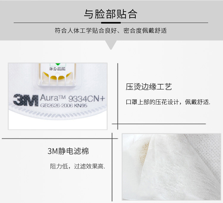 3M 9334CN+ 防雾霾防颗粒物粉尘带阀头带式KN95级骑行口罩 10只装
